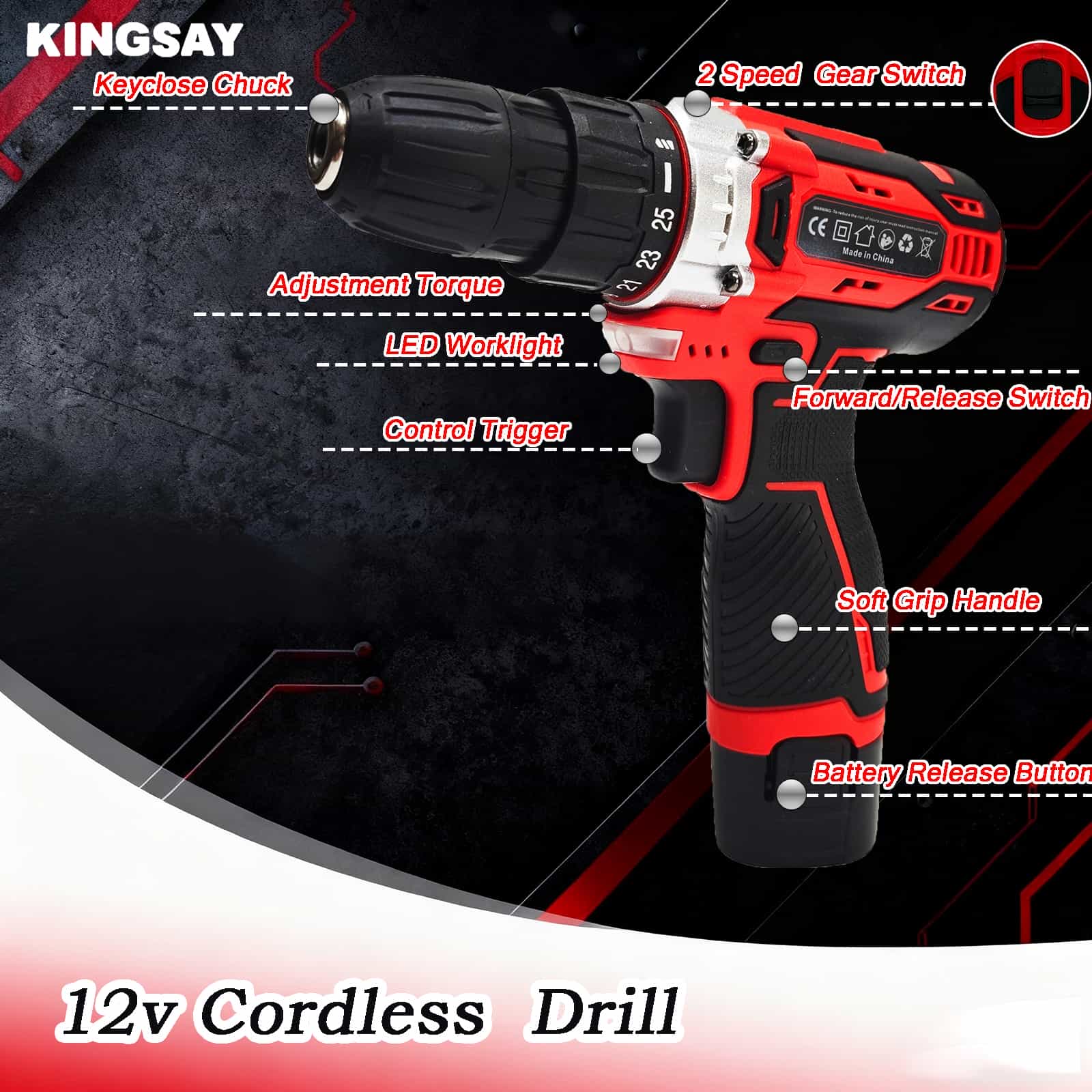 Die KINGSAY-handelsmerk gereedskapstel is toegerus met 2000mAh battery en 2-spoed motor (0-400 RPM vir skroef, 0-1500 RPM vir boor), wat langtermyn gebruik en vinnige laai verseker. Met net 2 uur se vinnige laai kan jy die kragtige motor se krag geniet en te alle tye gereed wees vir enige taak. Hierdie stel bevat ook noodsaaklike handgereedskap soos Klouhamer, Langneustang, Nutsmes met lemme, Maatband, Skroewedraaier en Hex Key, wat dit 'n veelsydige kraggereedskapstel vir verskeie projekte maak.