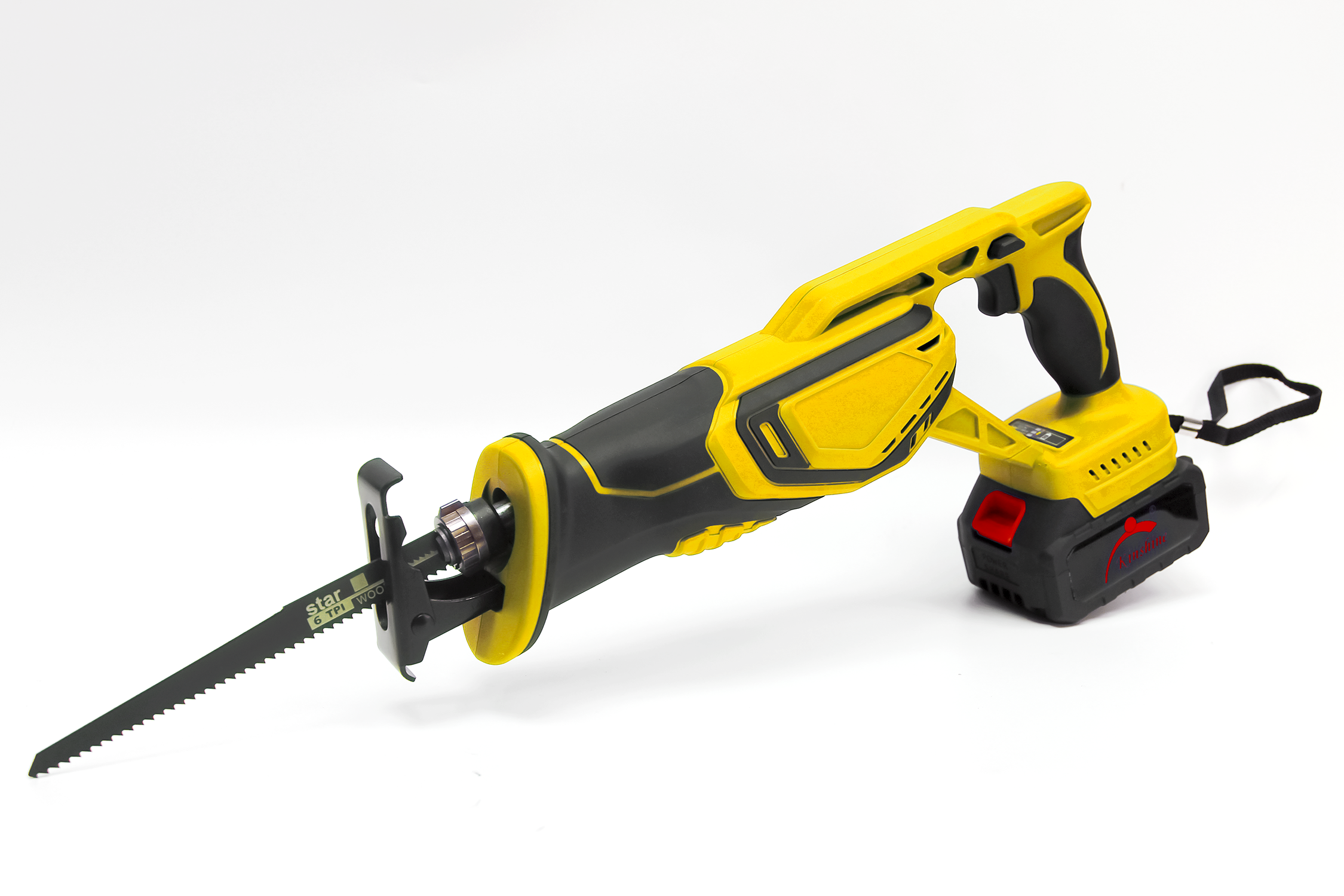 Herramienta de sierra de plantilla sin escobillas de 21V con velocidad variable, acción orbital de 3 posición para corte recto / curvo / circular, amarillo