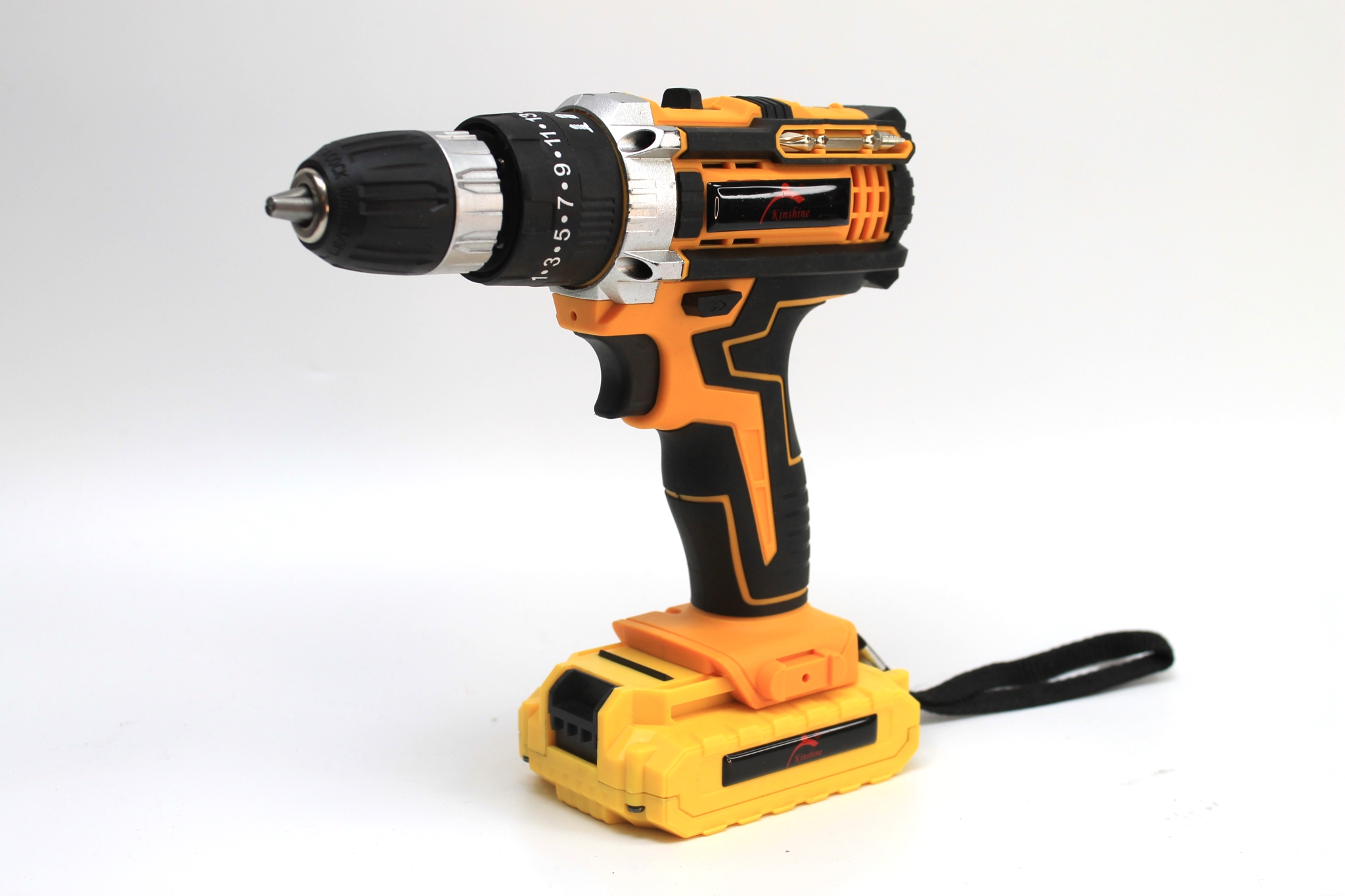 Cordless Lithium Battery Drill with Impact Function, Rechargeable drill, Flashlight, Multi-Functional Household Electric Screwdriver, Yellow Drill