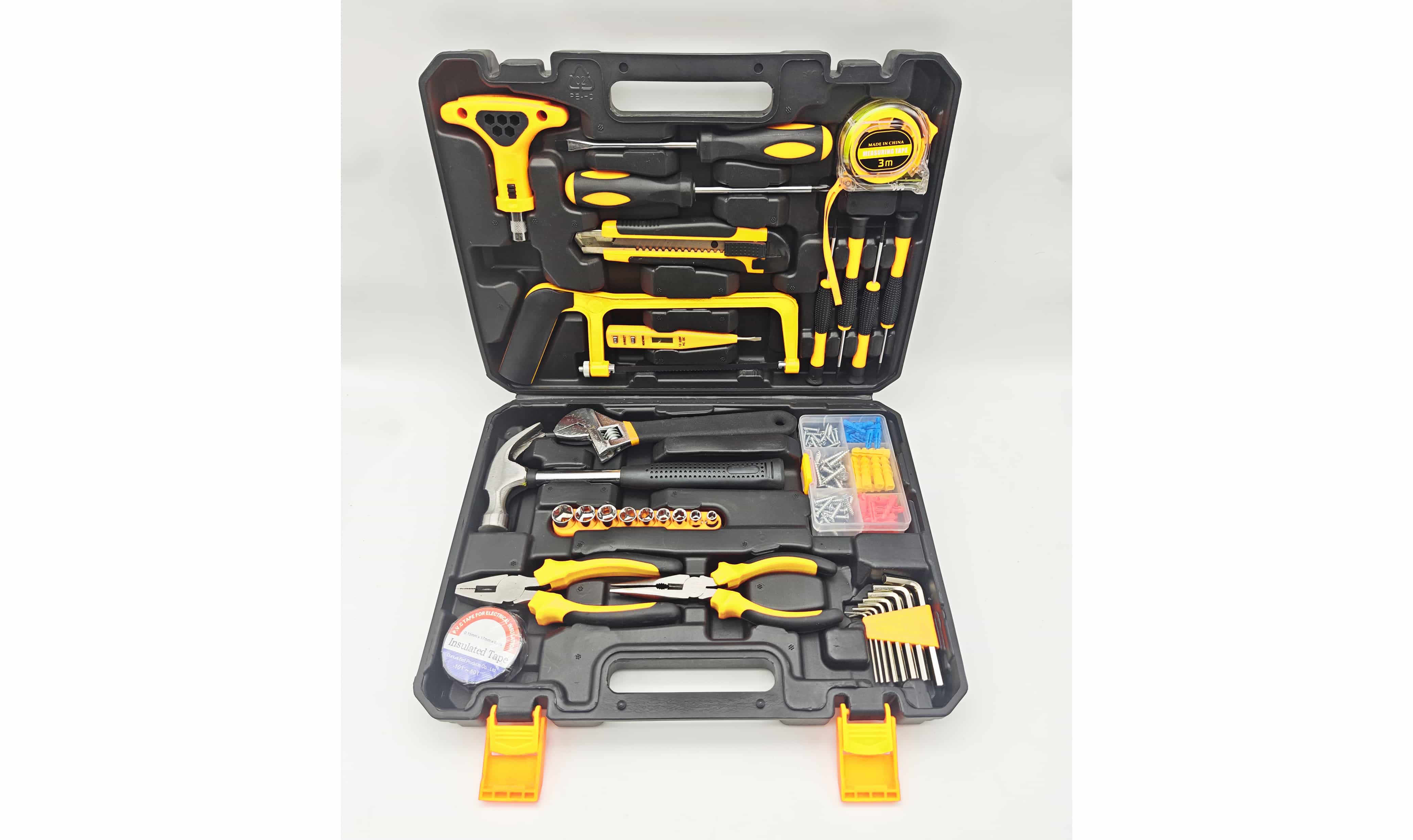 65 件套带黄色钻头的工具套装、带钻头的家用工具套件、女士手动工具套件